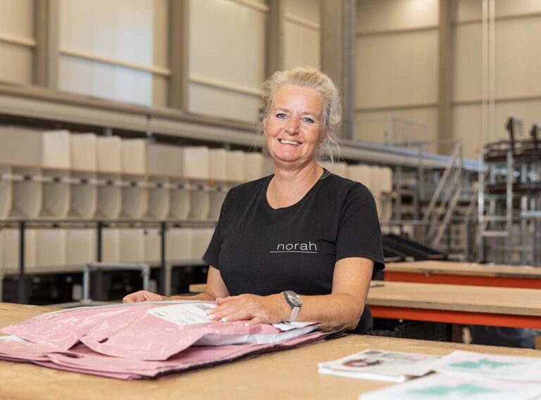 Het magazijn is het kloppende hart van Norah. Vanaf hier worden de winkelvoorraden aangevuld en worden alle webshop pakketten verstuurd. Sandra is als magazijnmedewerker bij Norah onderdeel van het grote team dat het magazijn dagelijks draaiende houdt.